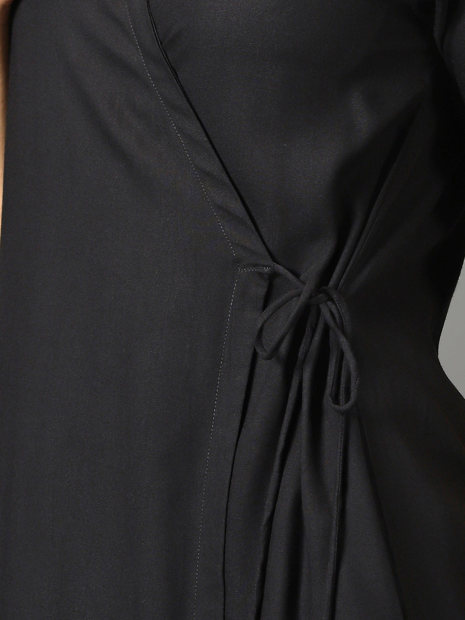 Black Angrakha Kurta With Dori Tie Up & Half Palazzos
