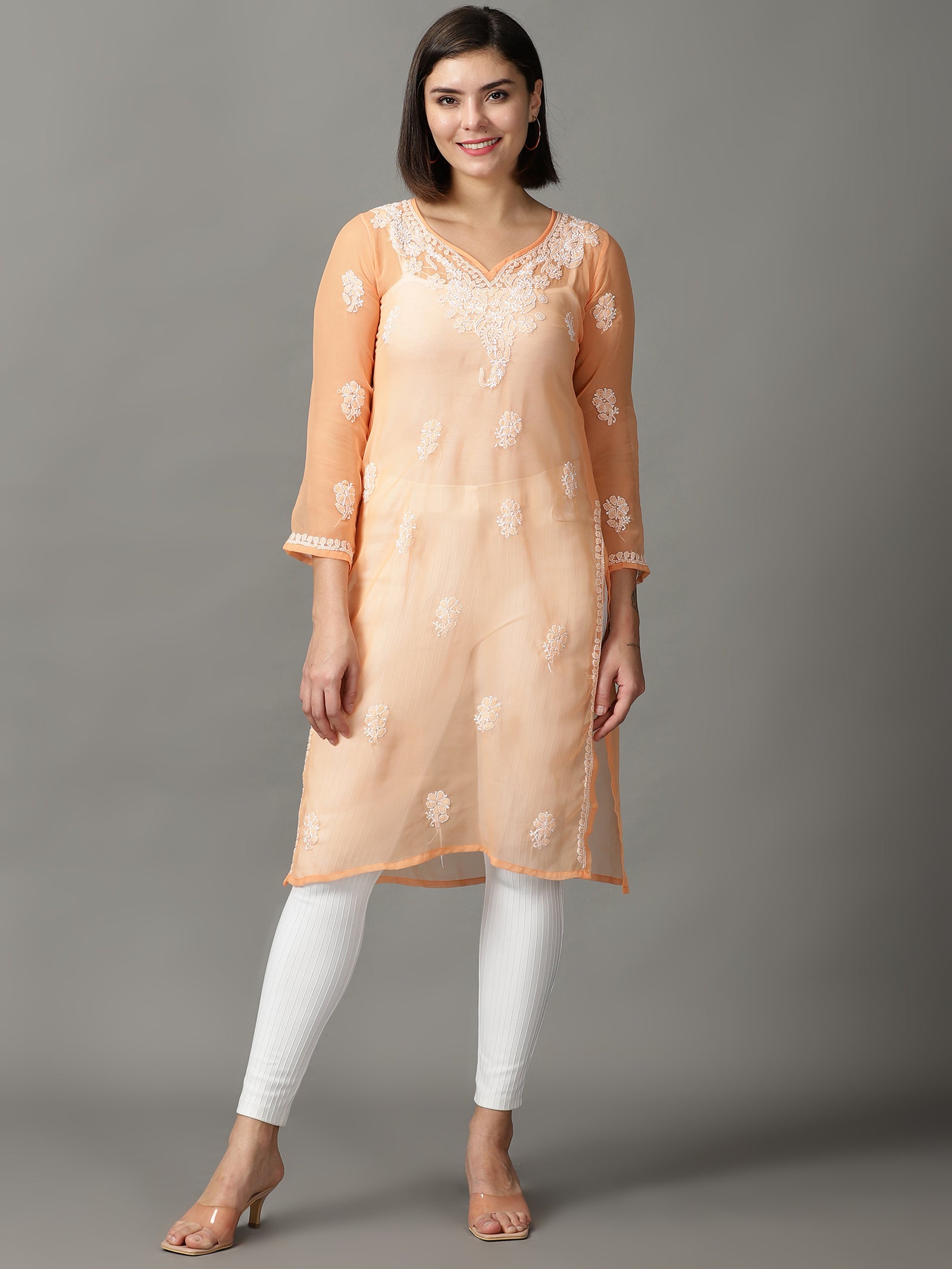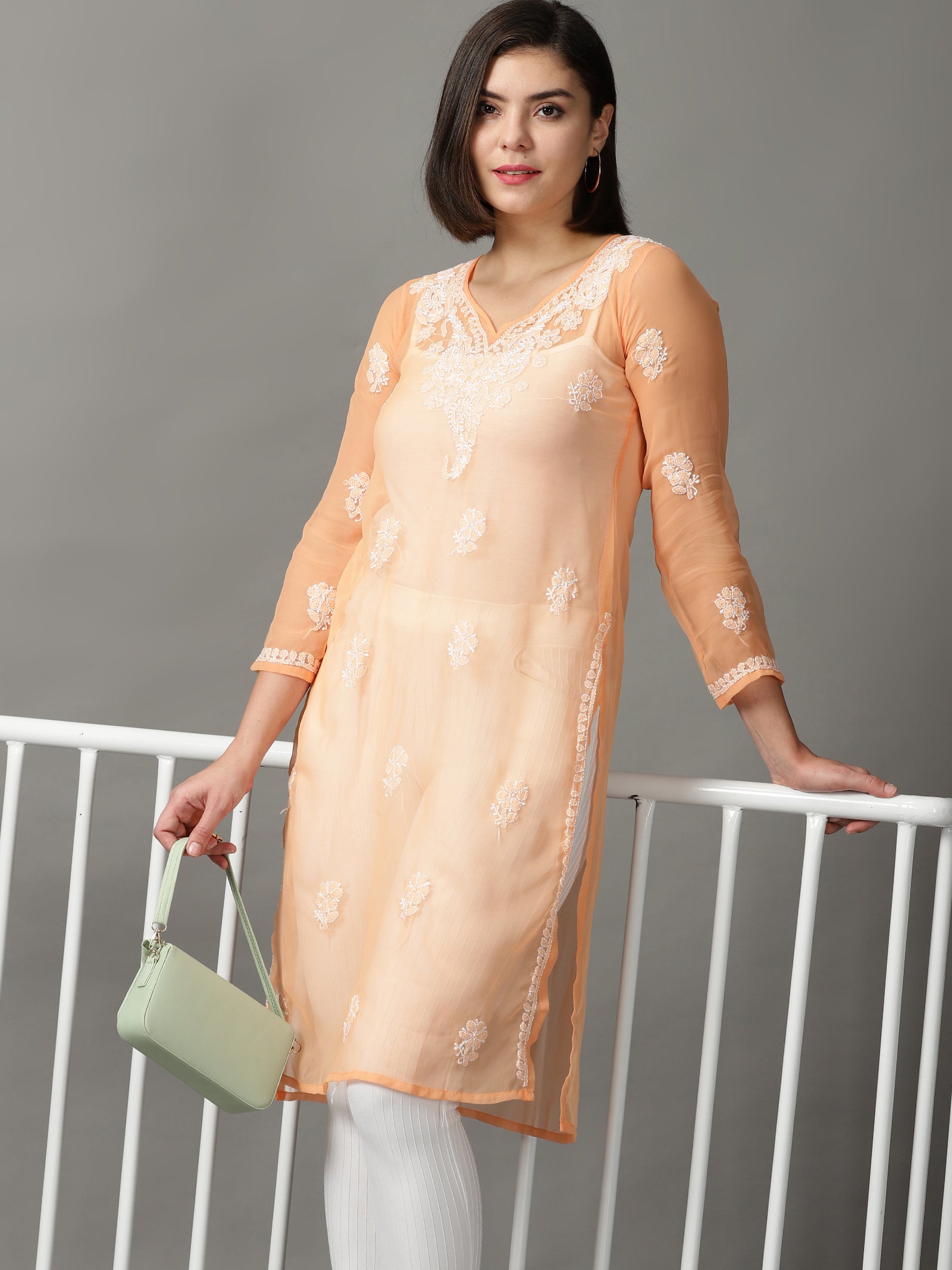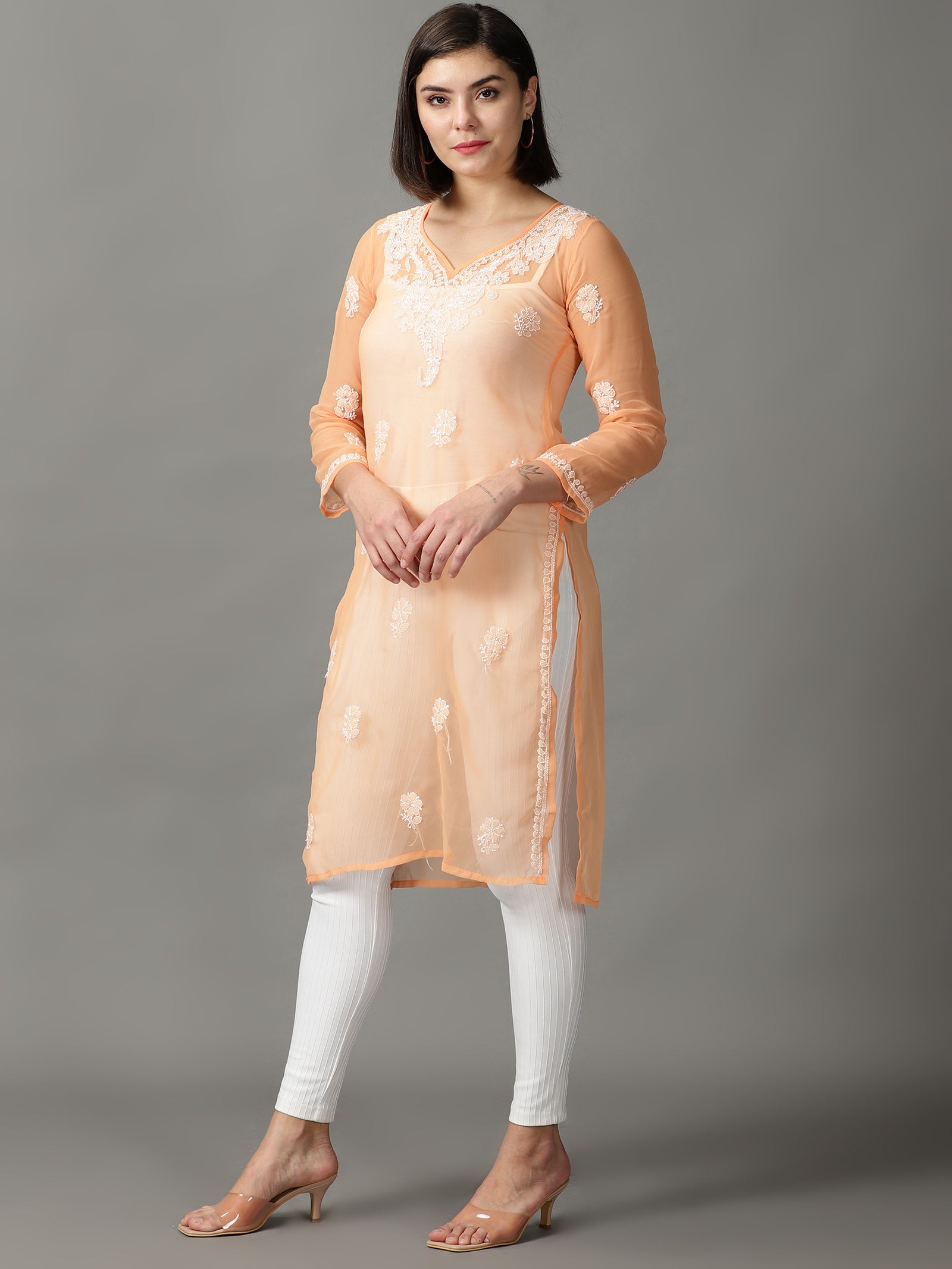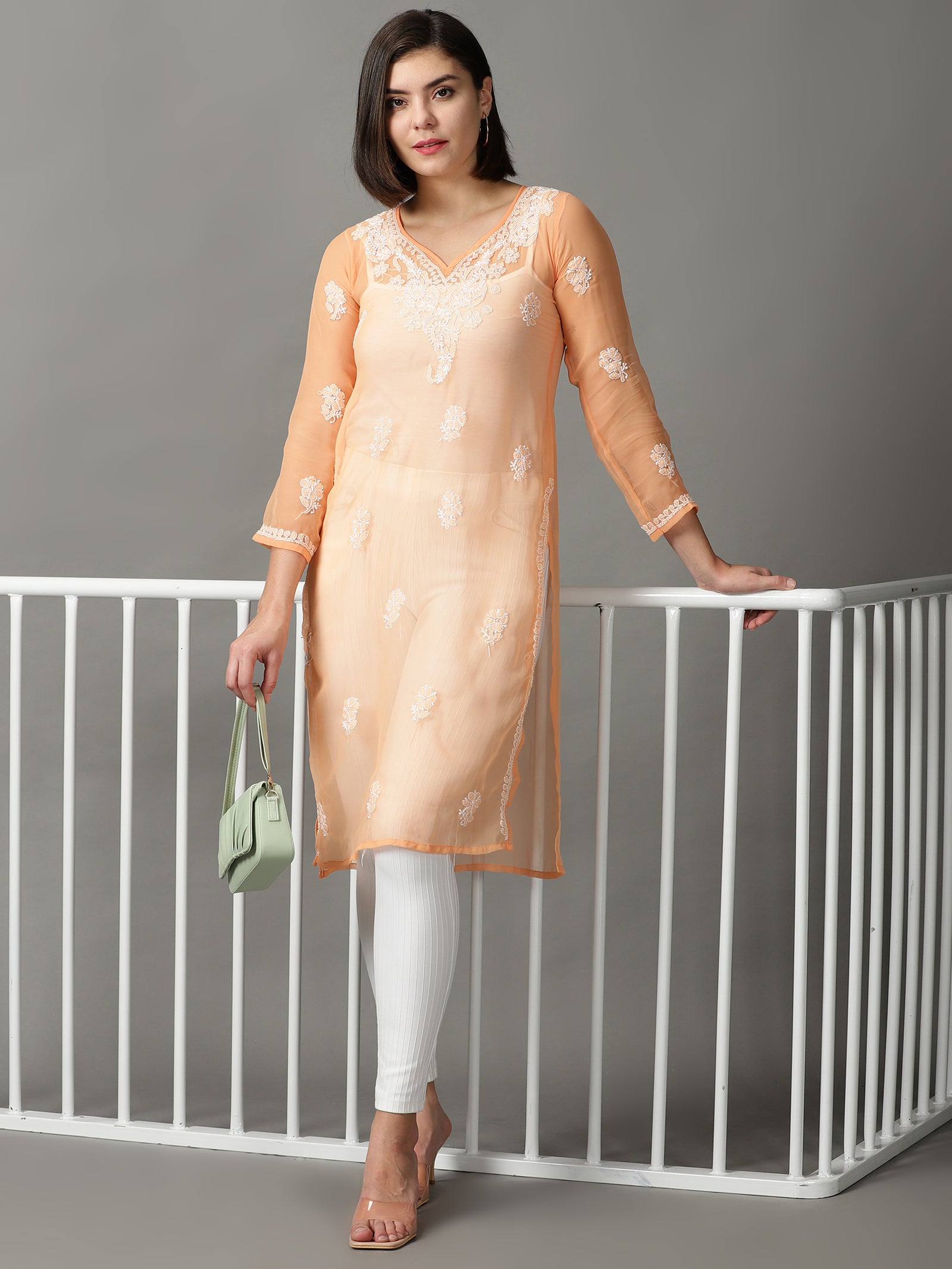 The Chikankari Orange Kurta is beautifully crafted and fits well.