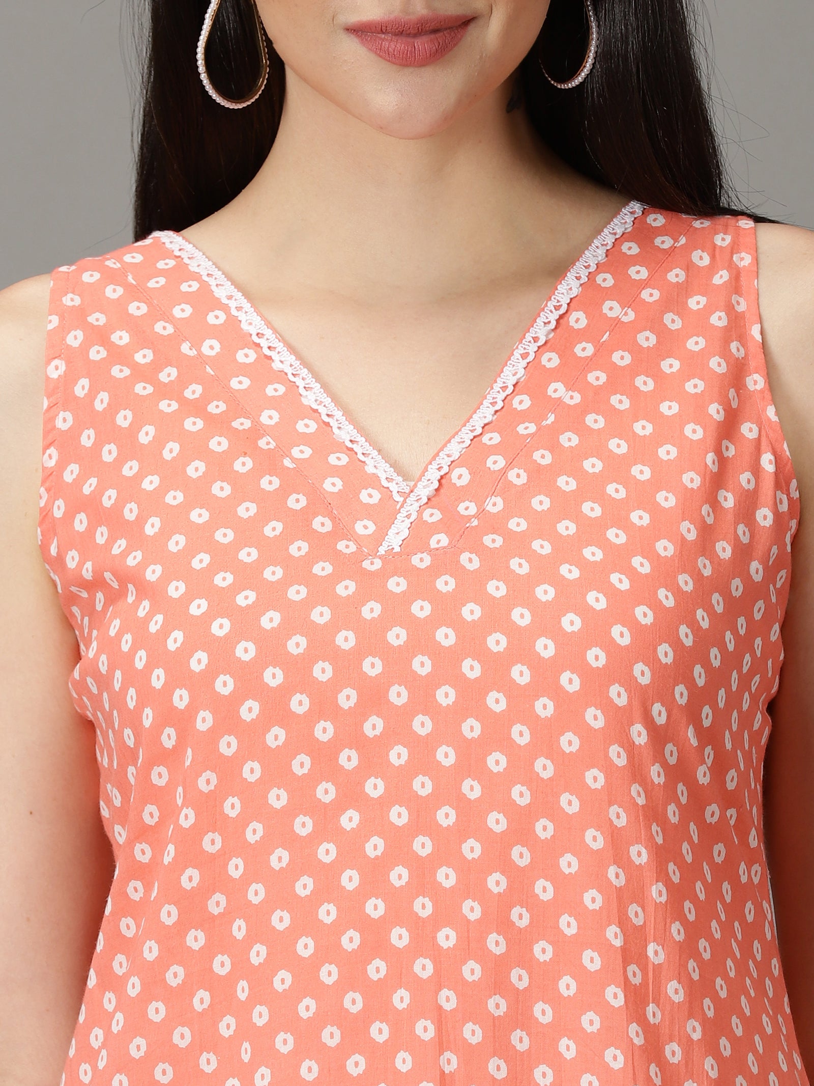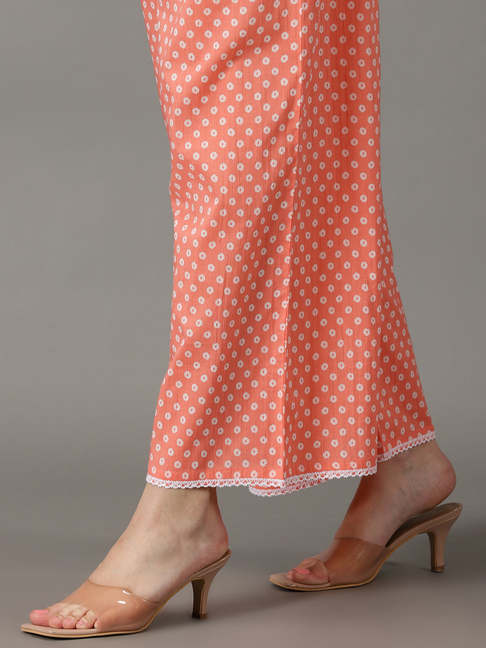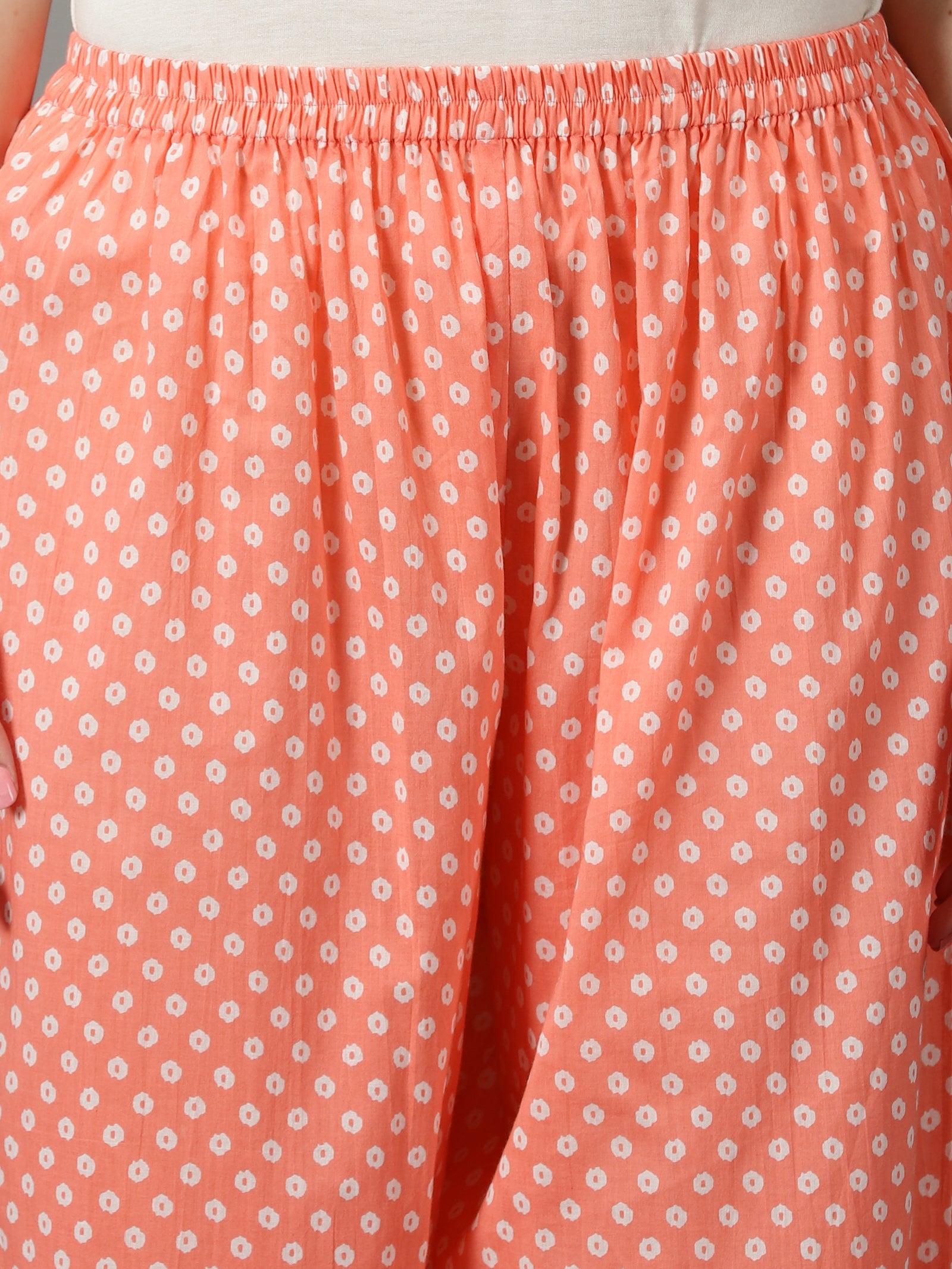 The Peach Straight Cotton Kurta with Palazzos is comfortable and stylish.