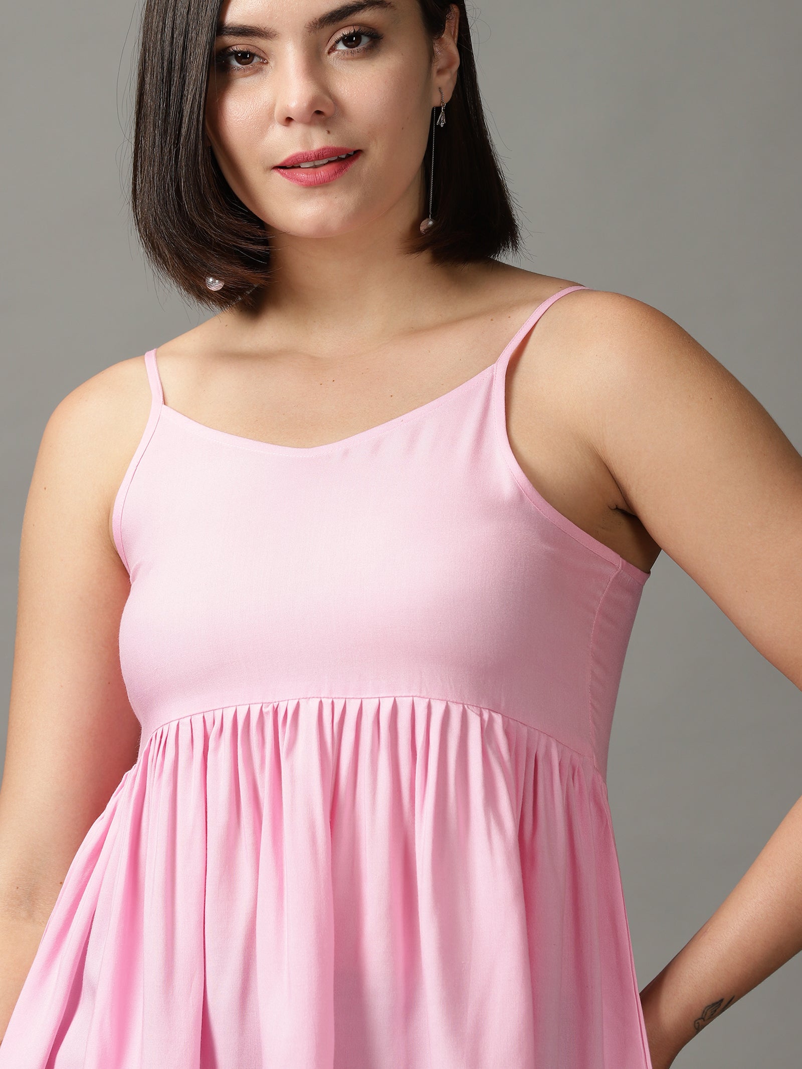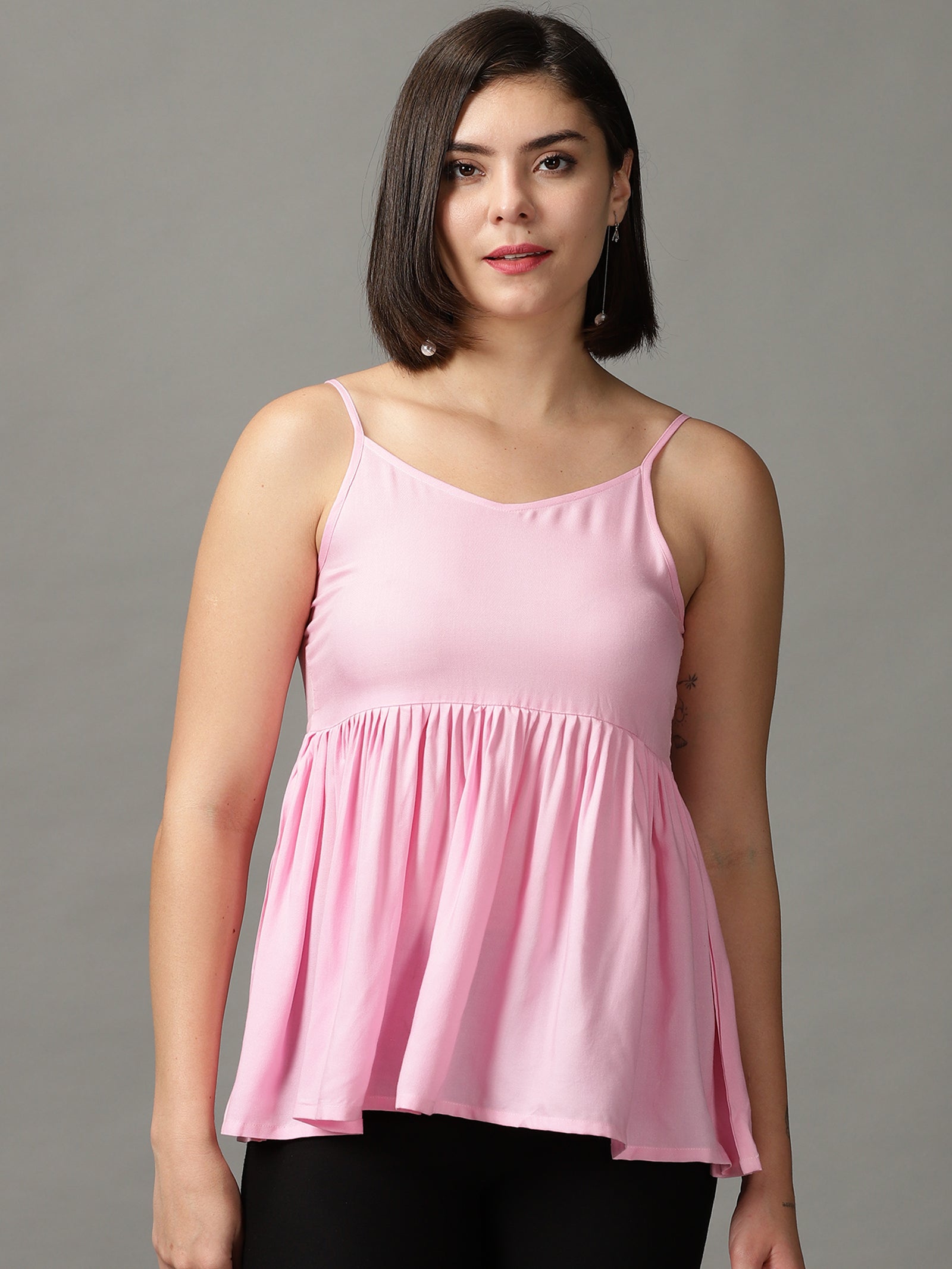 Our pink rayon a line top crefted in soft rayon fabric sholder straps features a round neck and graceful style, making it perfect for festivities.