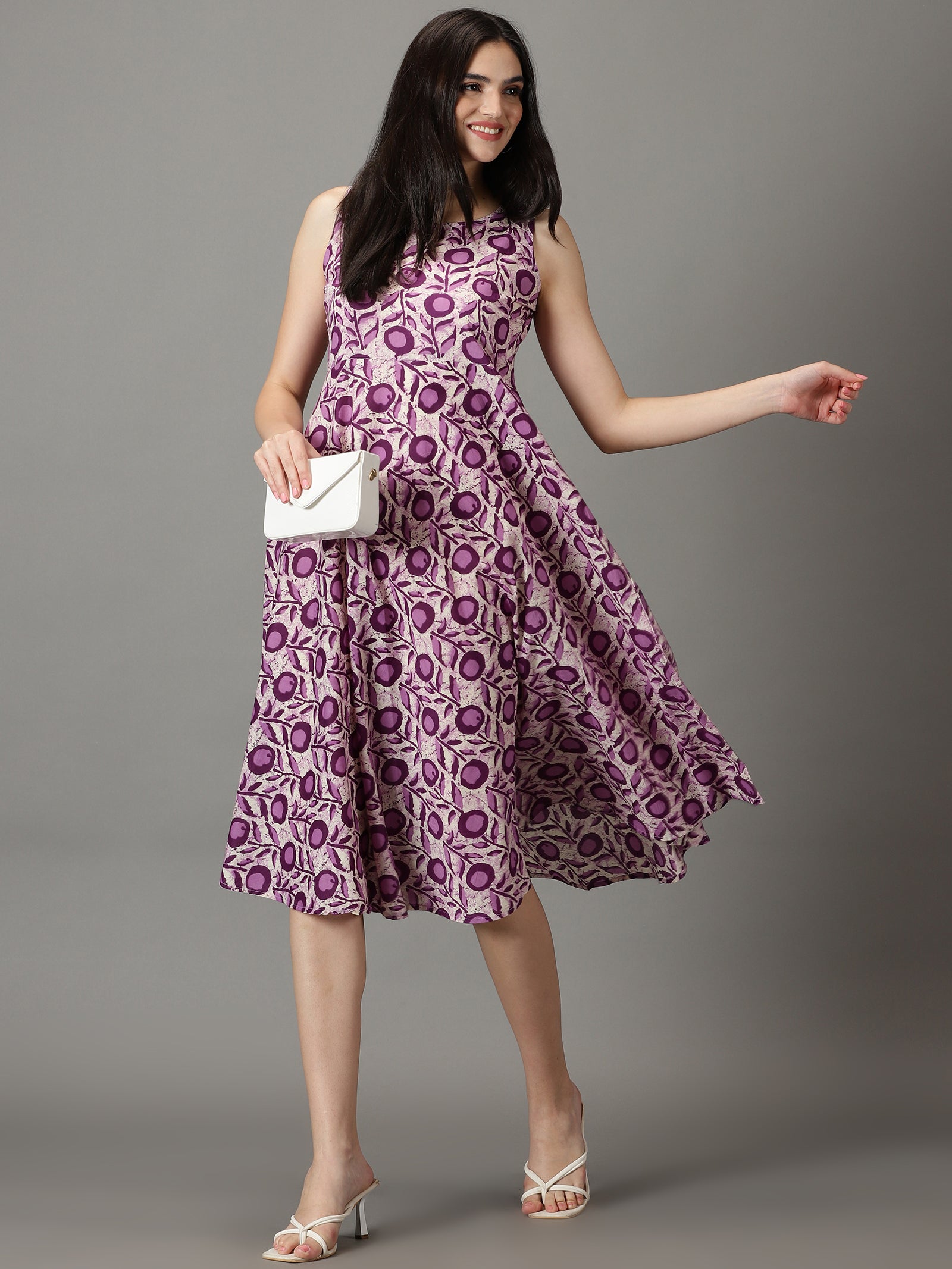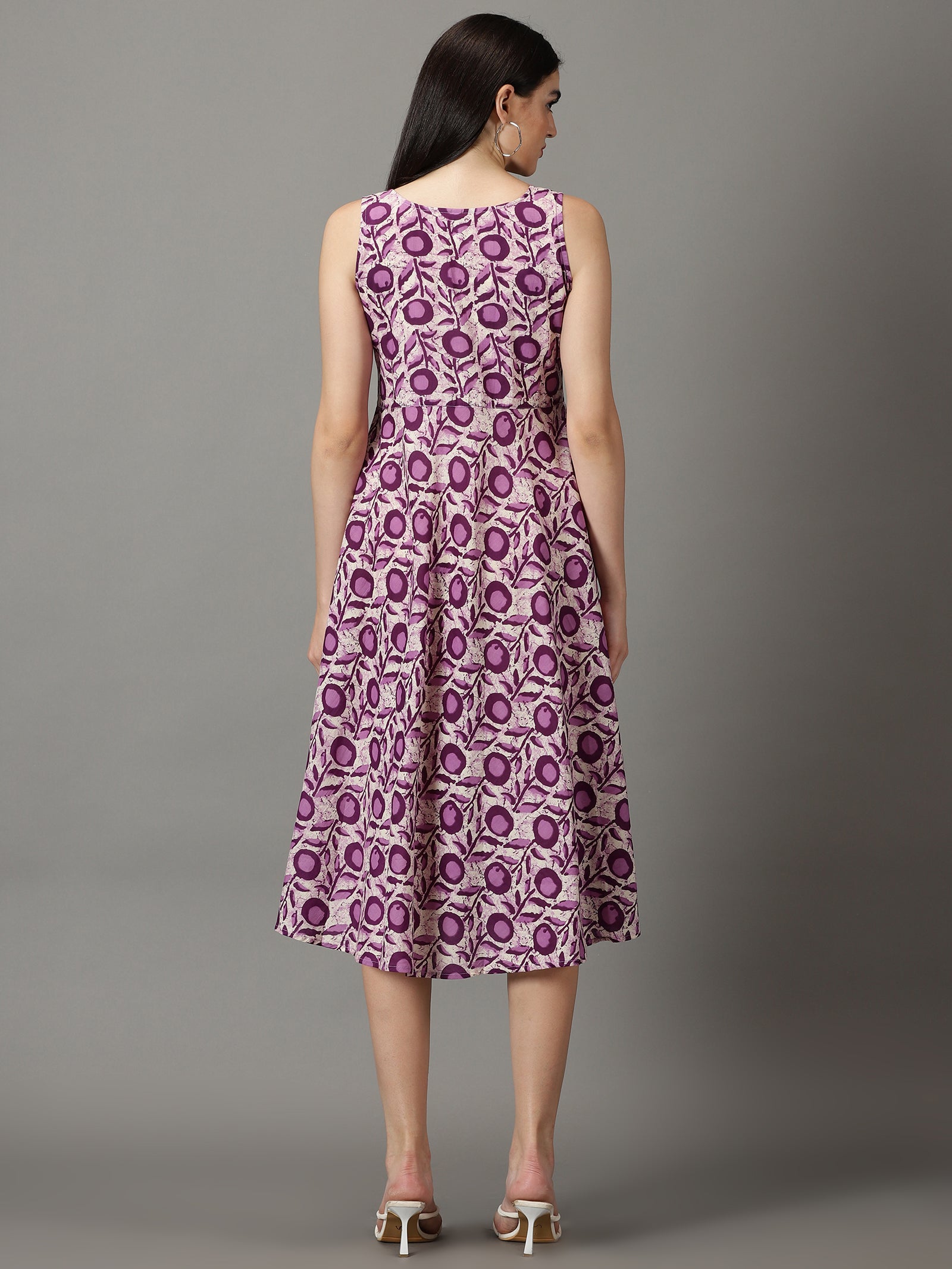 Our purple kurta,crafted in cotton fabric,features a round neckline and sleevless style. captivating floral prints, this style is perfect for summer.