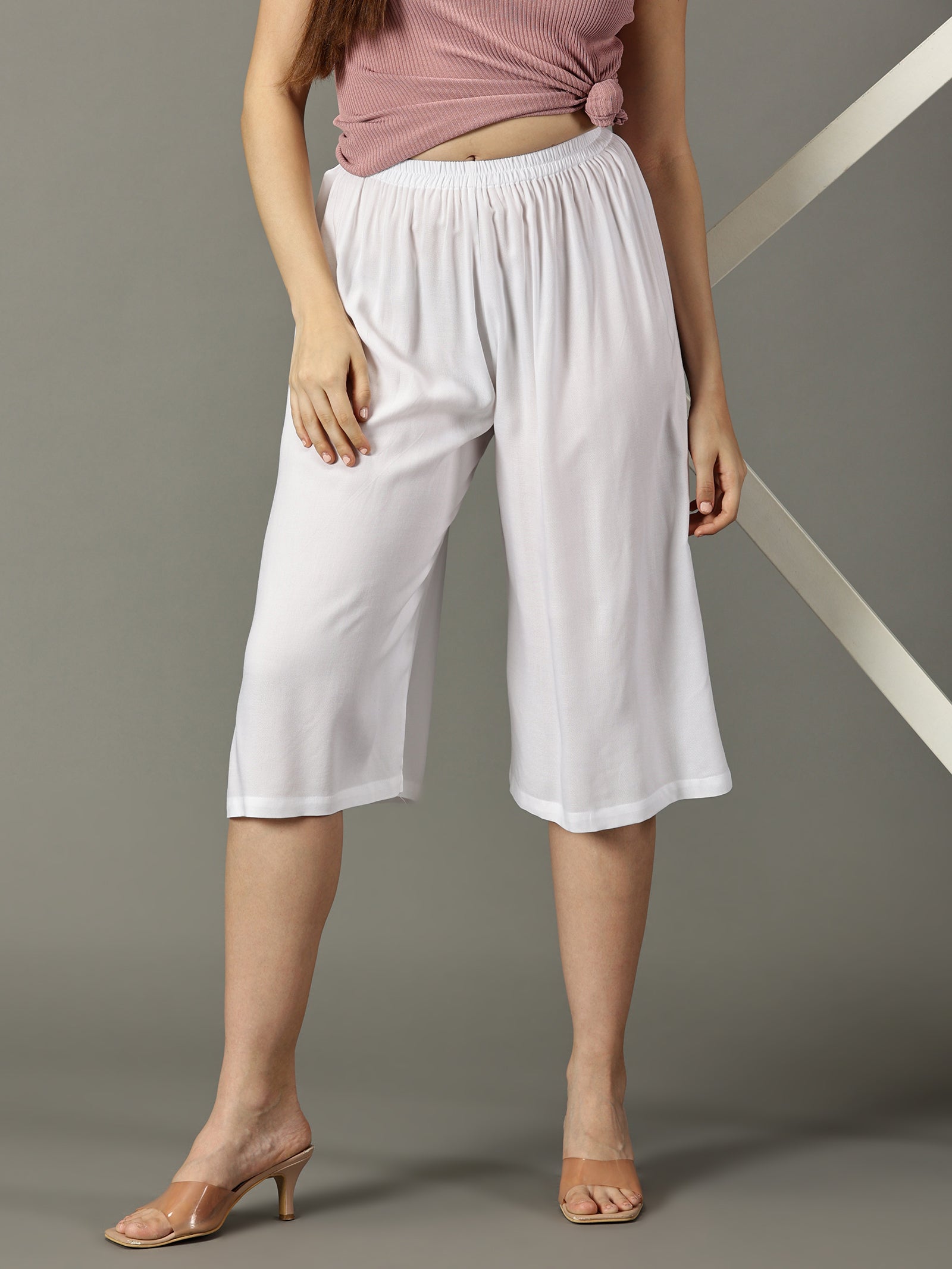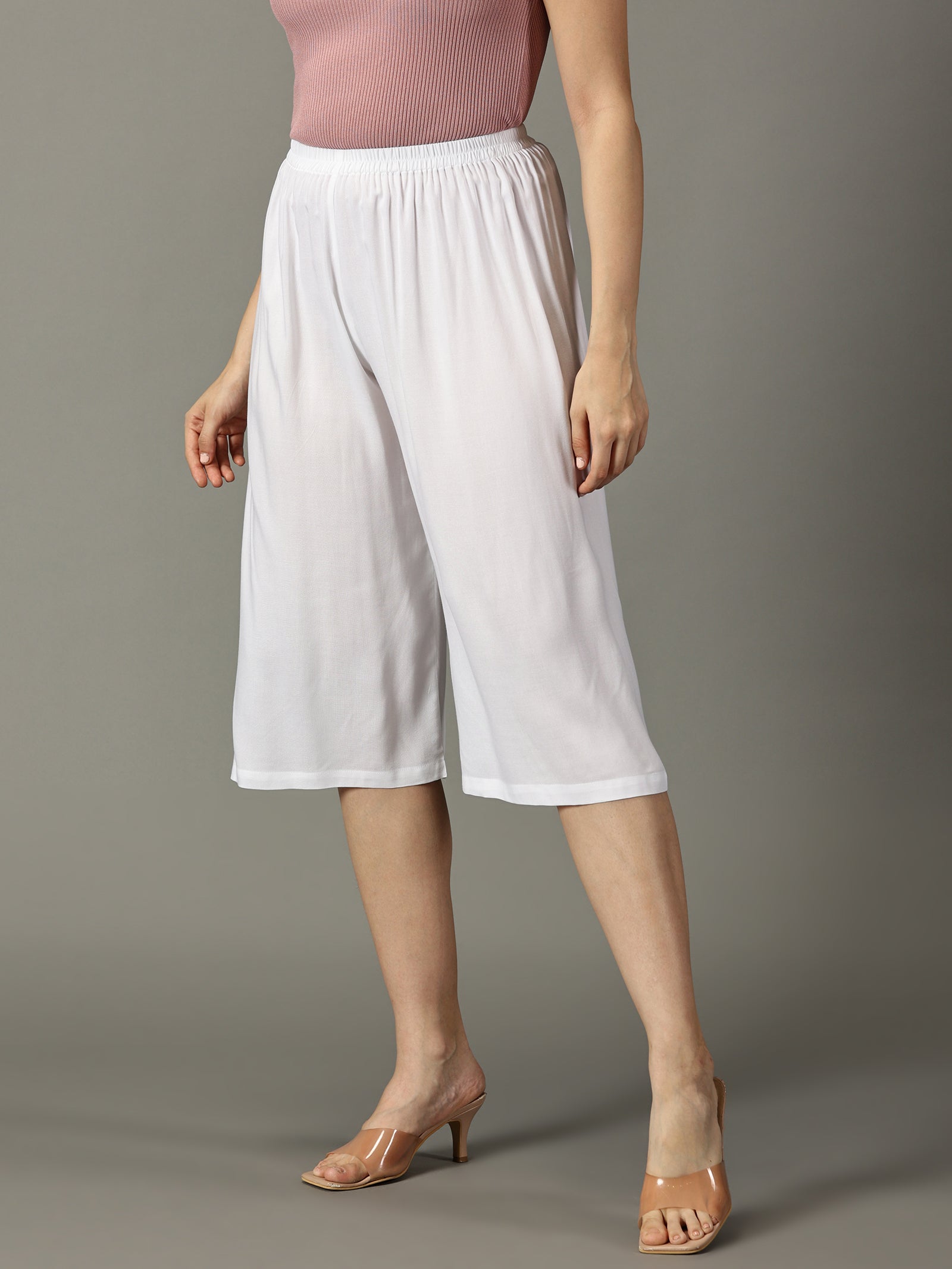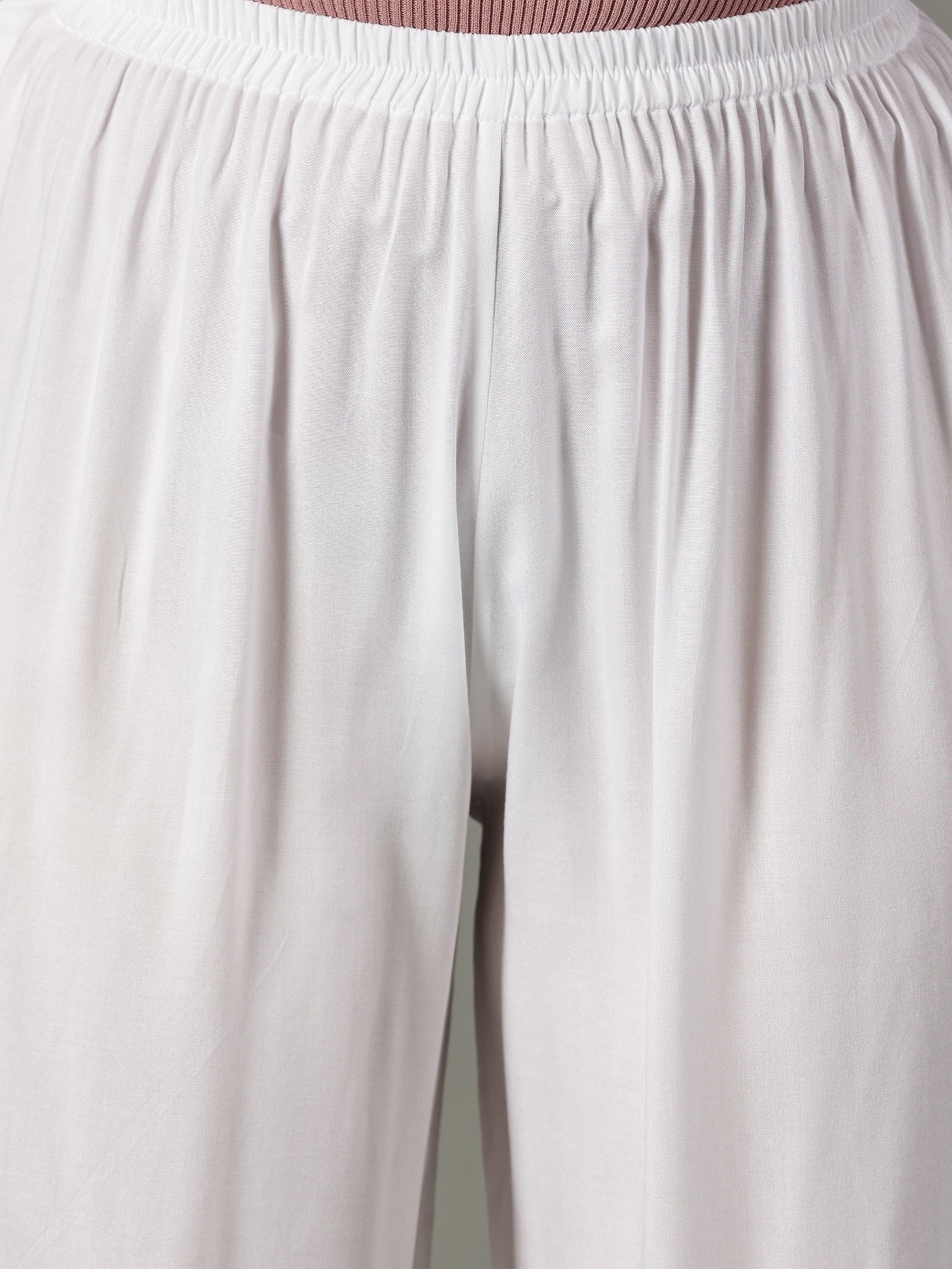 Our 2-piece white rayon solid angrakha suit set features a wrap kurta with a v-neckline and three-quarter sleeves. Complemented with short palazzos with partially elasticated waistband . This style is perfect for outing with friends.