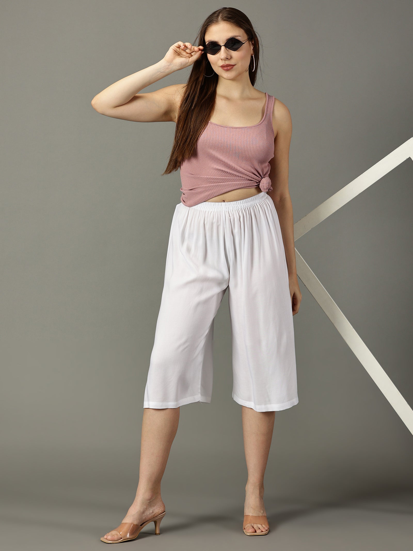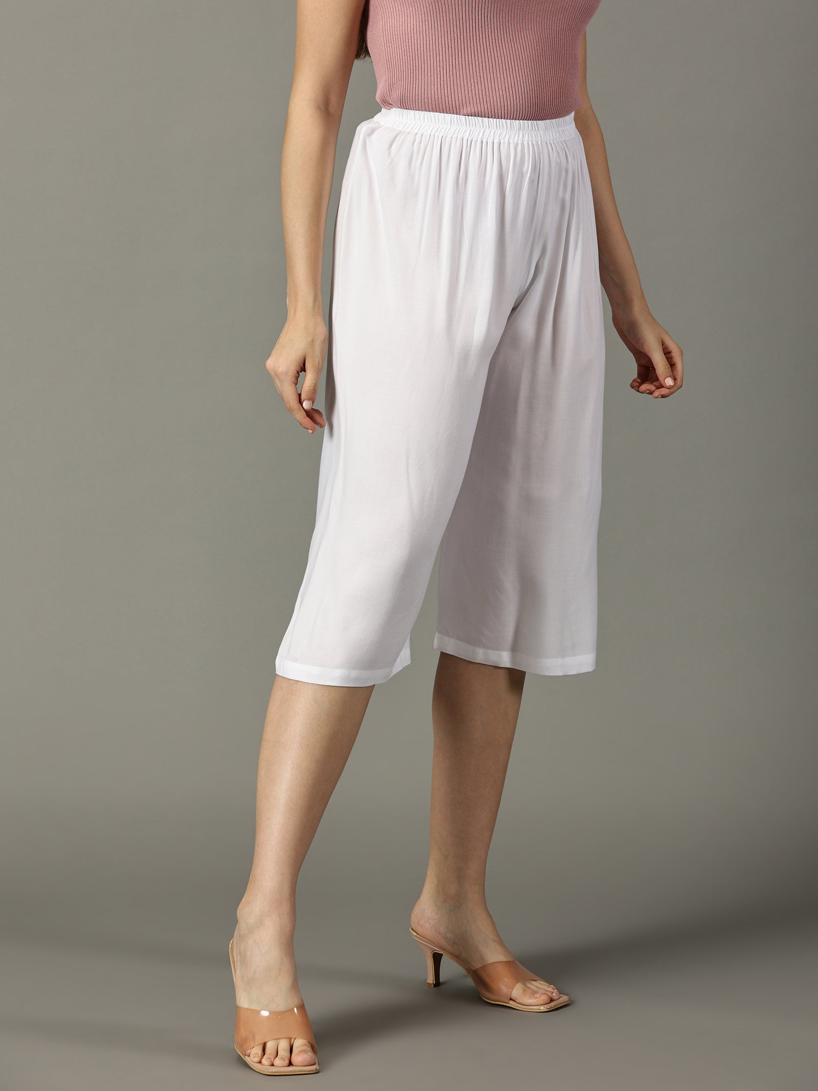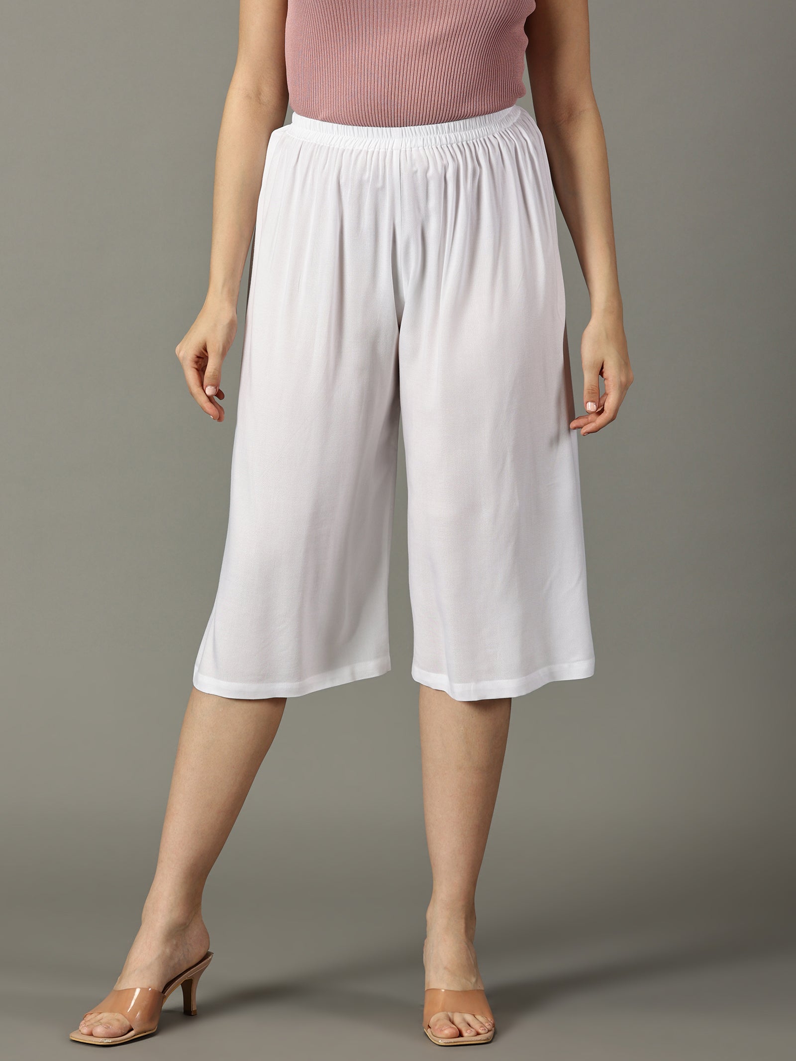 Our 2-piece white rayon solid angrakha suit set features a wrap kurta with a v-neckline and three-quarter sleeves. Complemented with short palazzos with partially elasticated waistband . This style is perfect for outing with friends.