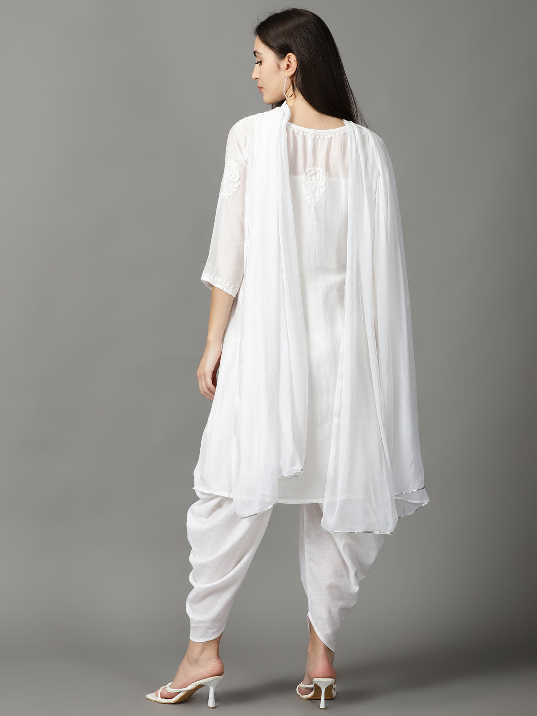 White Chikankari Cotton Kurta With Dhoti & Dupatta