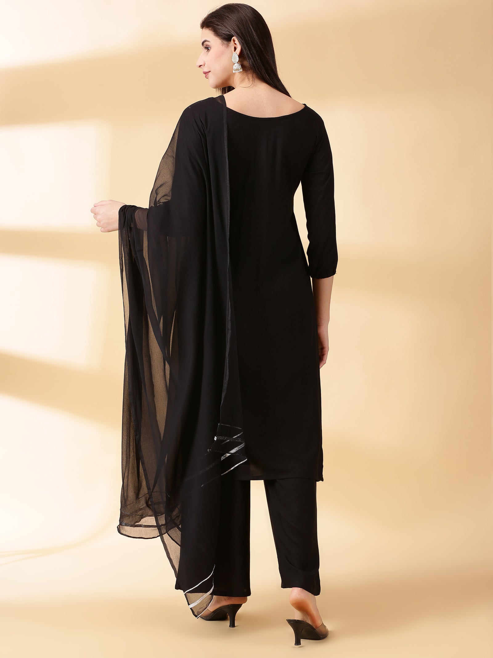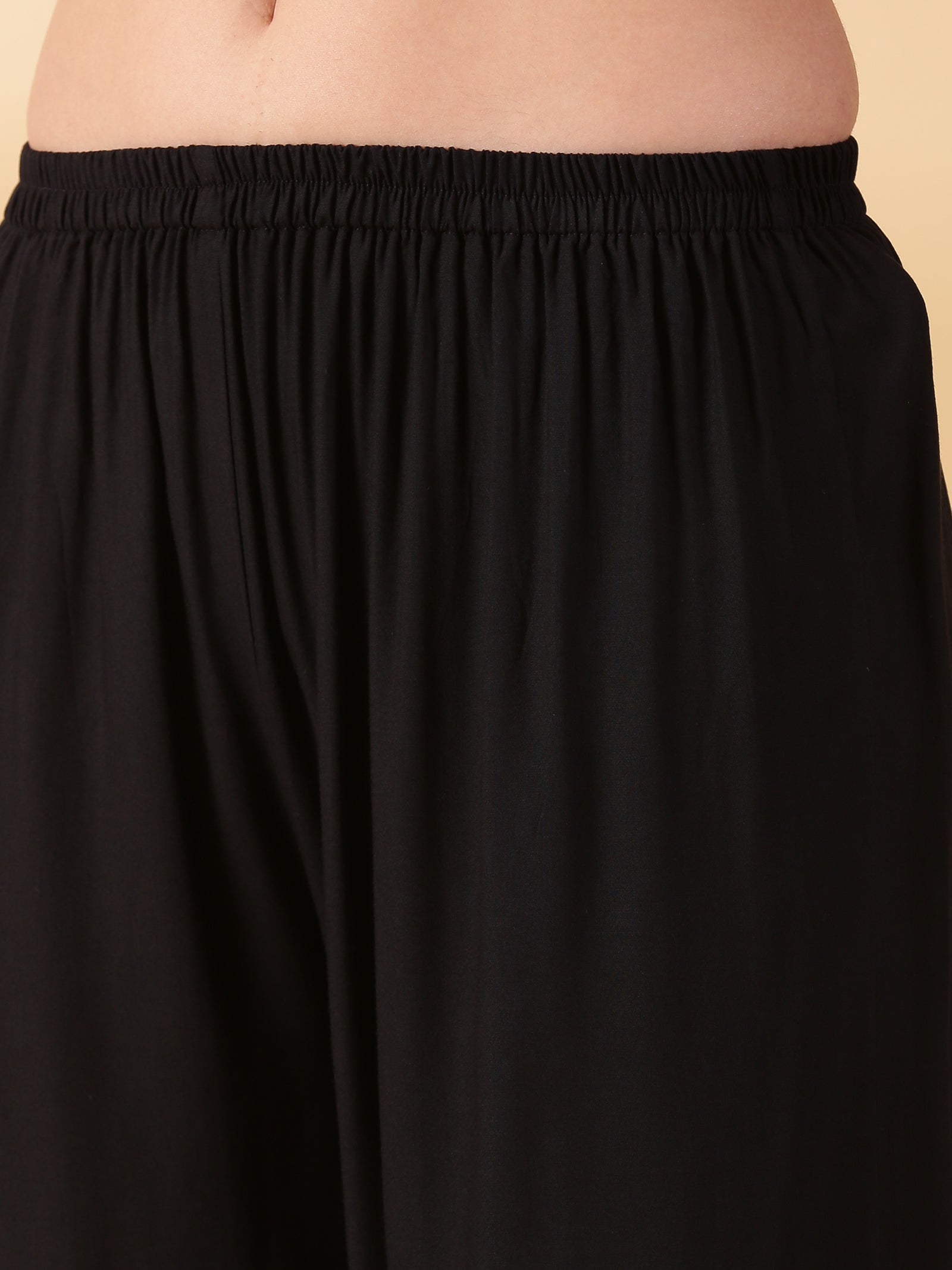 Women Black Reyon Alia Cut Kurta With Palazzos & Dupatta