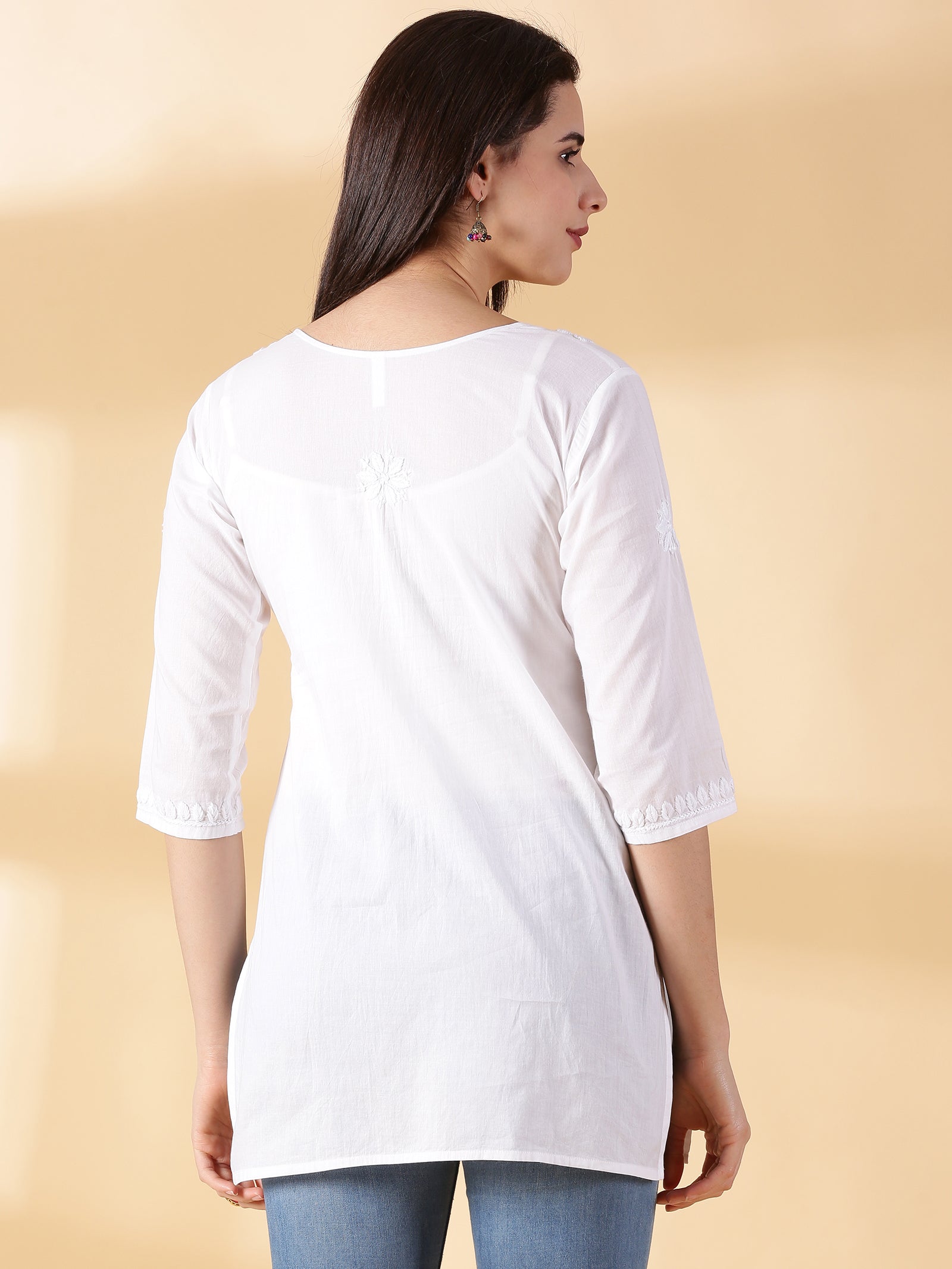 Women Hand Embroidered White Cotton Lucknowi Chikankari kurta
