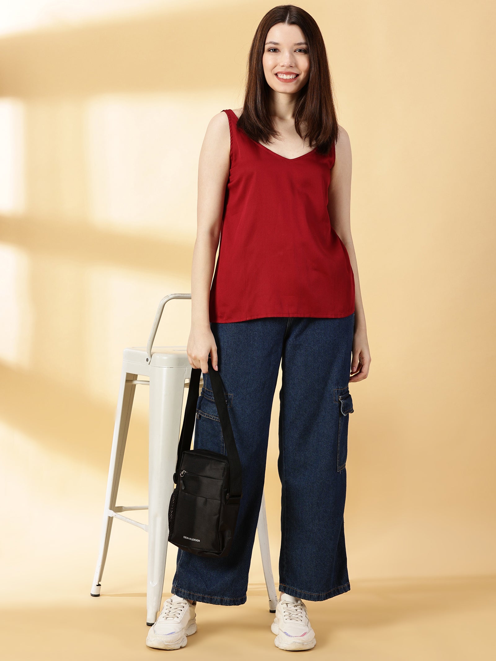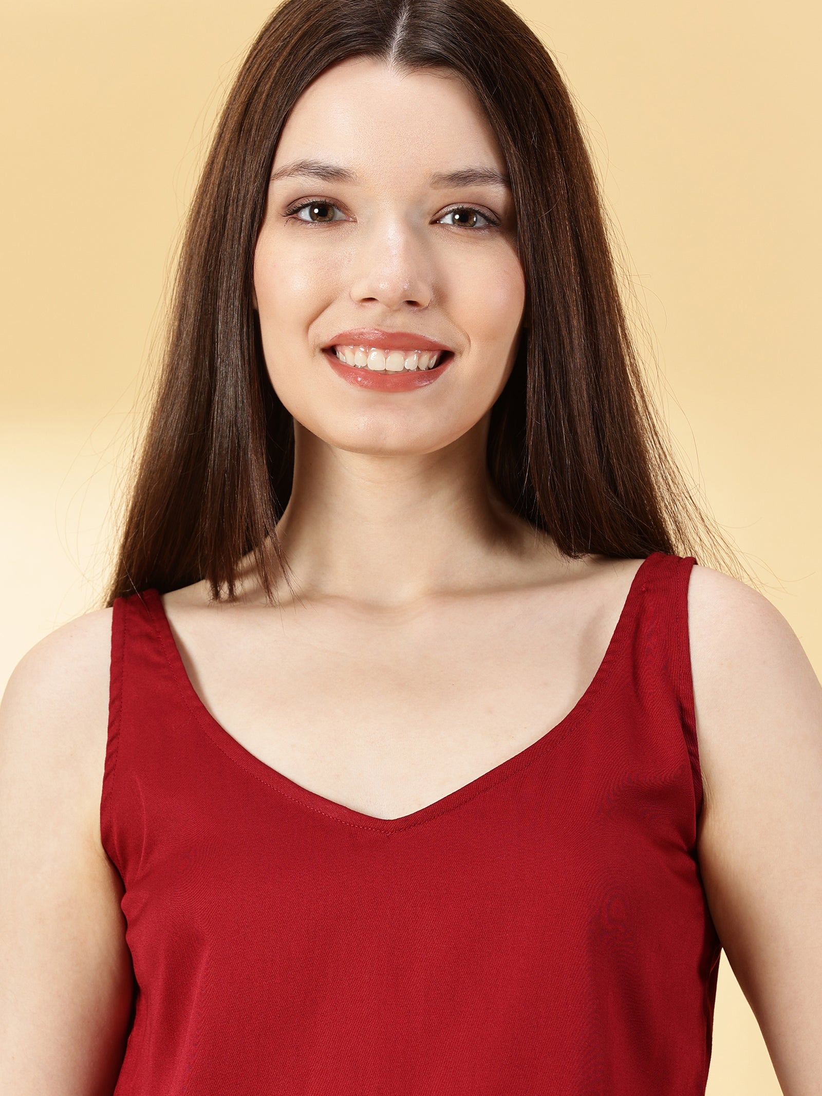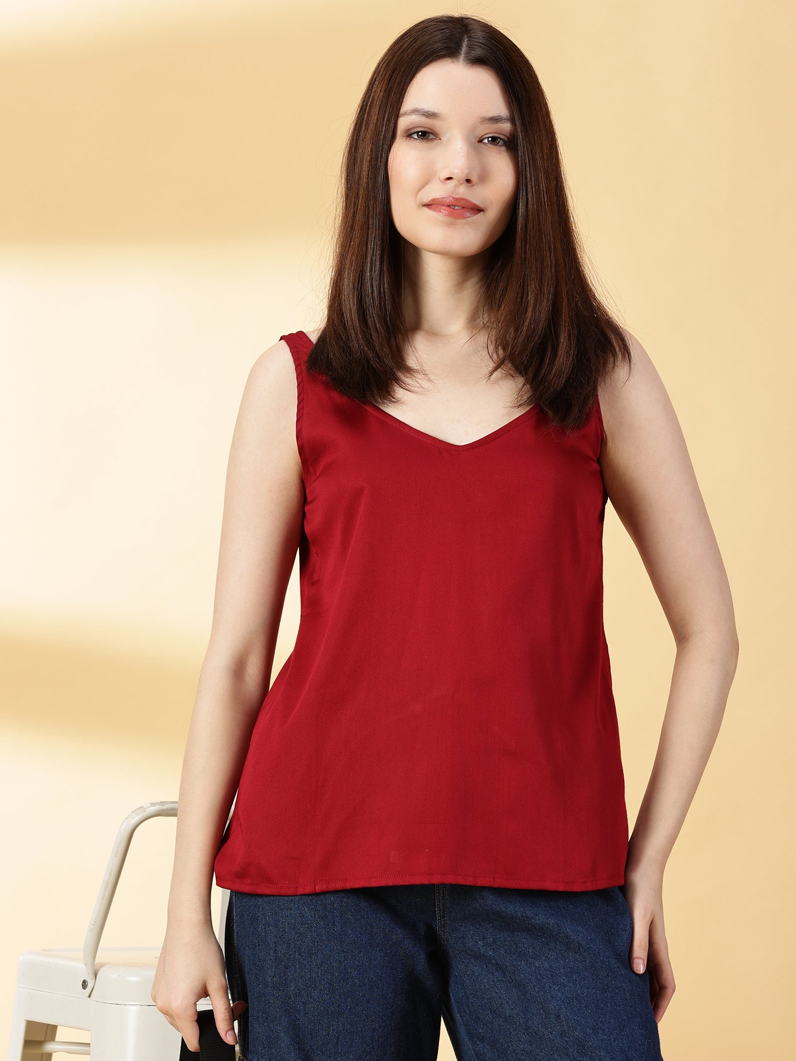 • Fabric: Cotton Silk, Neck: V-Neck, Sleeves: Sleeveless, Color: Maroon, Print or Pattern: Solid, Touch and Feel: Smooth and Soft