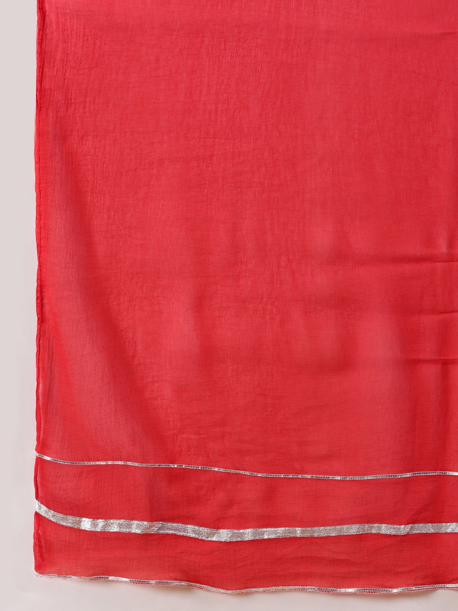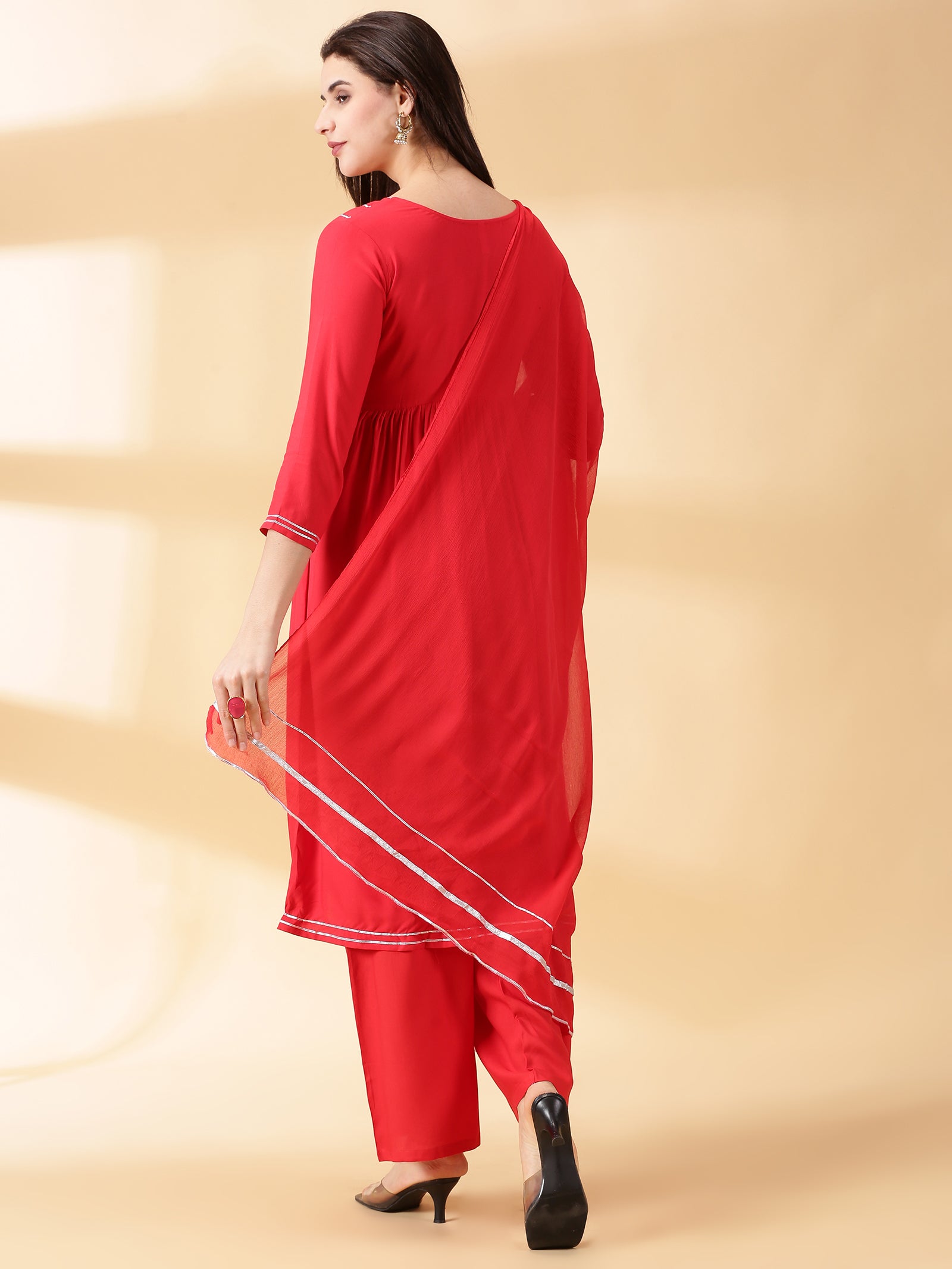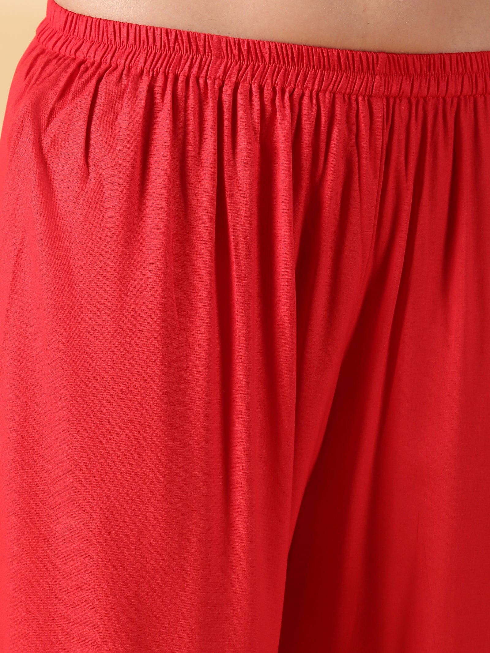 Women Red Reyon Alia Cut Kurta With Palazzos & Dupatta