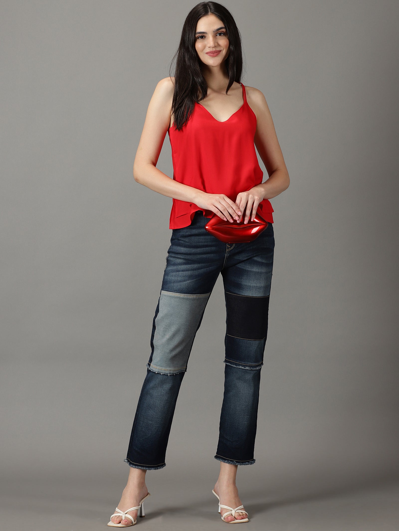 Our red rayon short top crafted in soft rayon fabric, features a front v neck & back squar neckline with handcrafted dori details. This graceful style is ideal for casual outings.